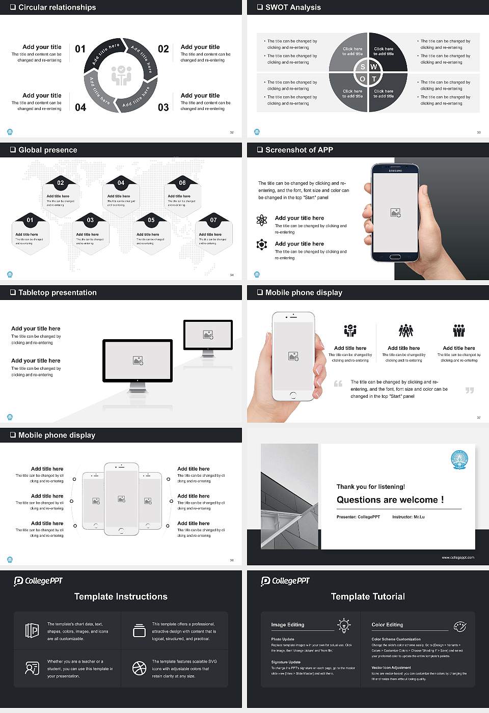 Easy to Edit: All graphics and content in the PPT template are fully editable. The template adheres to standard color schemes, allowing users to easily adjust the color scheme with a one-click color change feature.