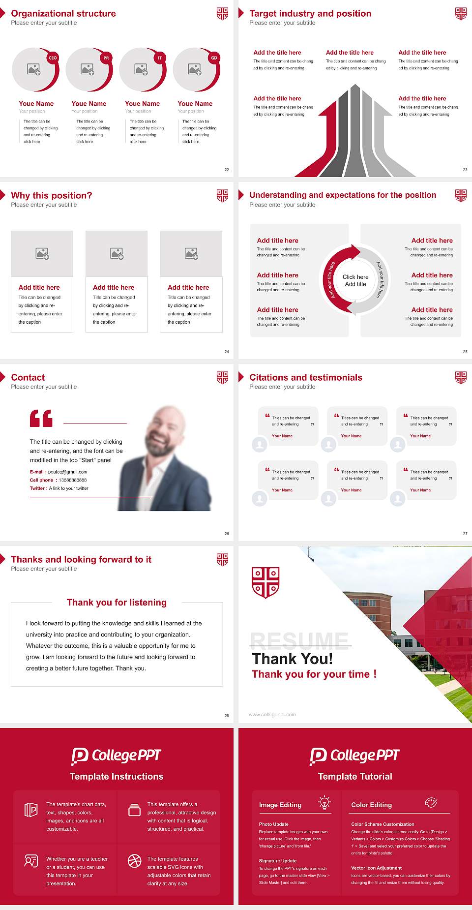 此模板用于简历,具有与本笃大学匹配的封面、校徽和主题色。购买后,您可以修改主题色、编辑幻灯片内容以及母版幻灯片。您可以通过本笃大学、简历 PPT模板、PPT模板等关键词找到该模板。