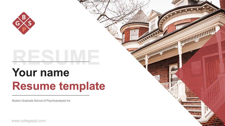 Boston Graduate School of Psychoanalysis Inc이력서 PPT 템플릿은 원클릭 색상 변경을 지원하는 표준화된 PPT 템플릿입니다. 아래 단계를 따르세요: