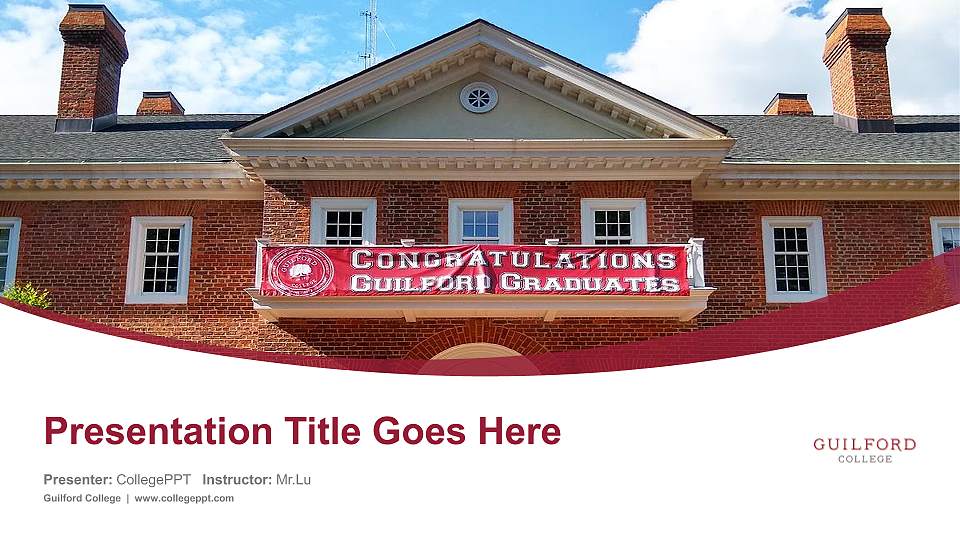 This Lesson template features a matching cover, school emblem, and theme colors for Guilford College. After purchase, you can modify theme colors, edit slide content, and master slides. Find this template with keywords like Lesson, Guilford College PPT template, PPT template, and more.