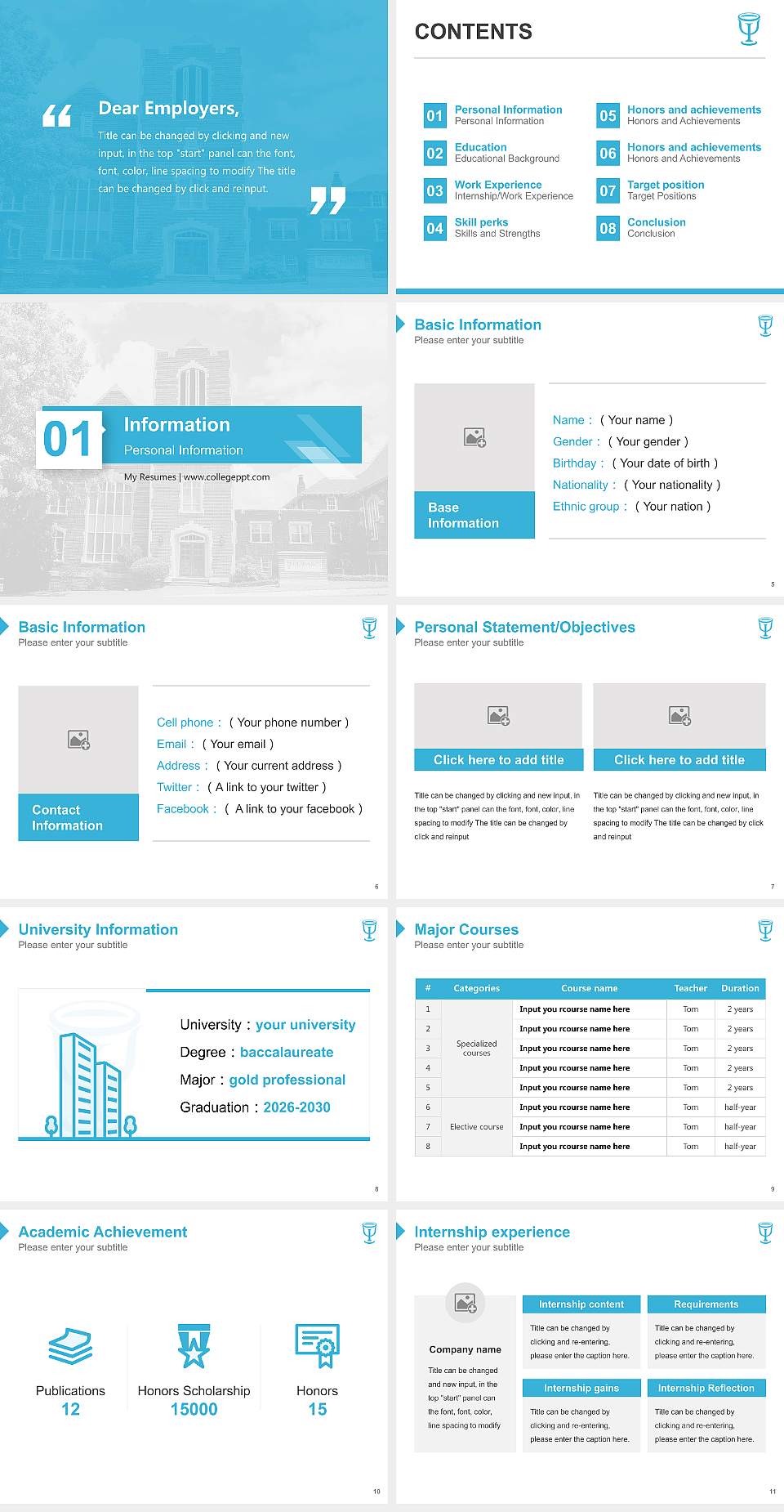 Richmont Graduate University이력서 PPT 템플릿은 원클릭 색상 변경을 지원하는 표준화된 PPT 템플릿입니다. 아래 단계를 따르세요: