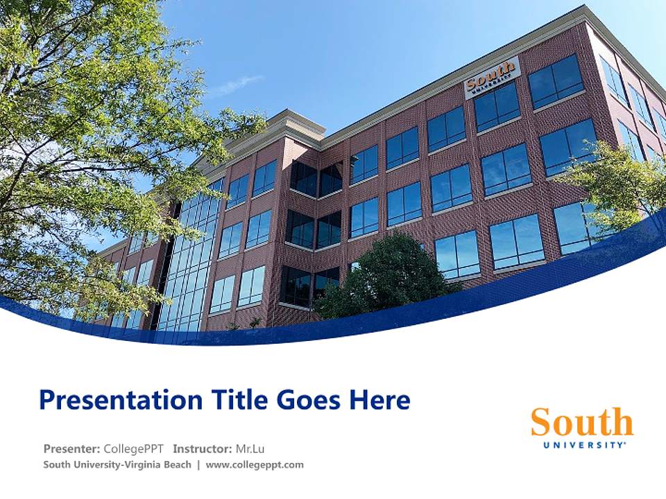 This template can be widely used for projects at South University-Virginia Beach, providing an efficient tool for both faculty and students to enhance their presentation experience. When using the template to create presentations, please ensure that your device's resolution matches the template's aspect ratio for the best visual effect.