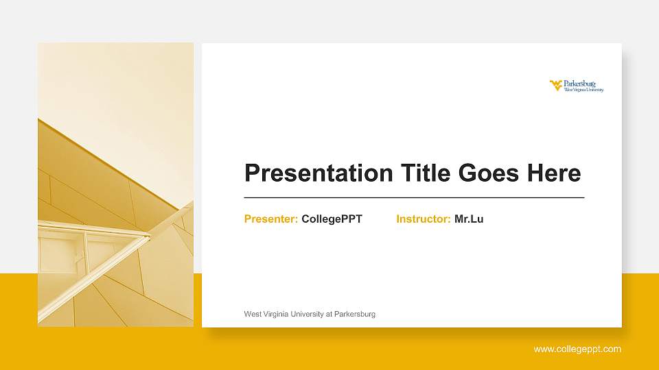 This template can be widely used for projects at West Virginia University at Parkersburg, providing an efficient tool for both faculty and students to enhance their presentation experience. When using the template to create presentations, please ensure that your device's resolution matches the template's aspect ratio for the best visual effect.