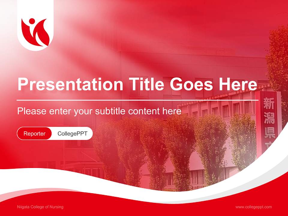 此模板用于讲座,具有与新潟护理大学匹配的封面、校徽和主题色。购买后,您可以修改主题色、编辑幻灯片内容以及母版幻灯片。您可以通过新潟护理大学、讲座 PPT模板、PPT模板等关键词找到该模板。