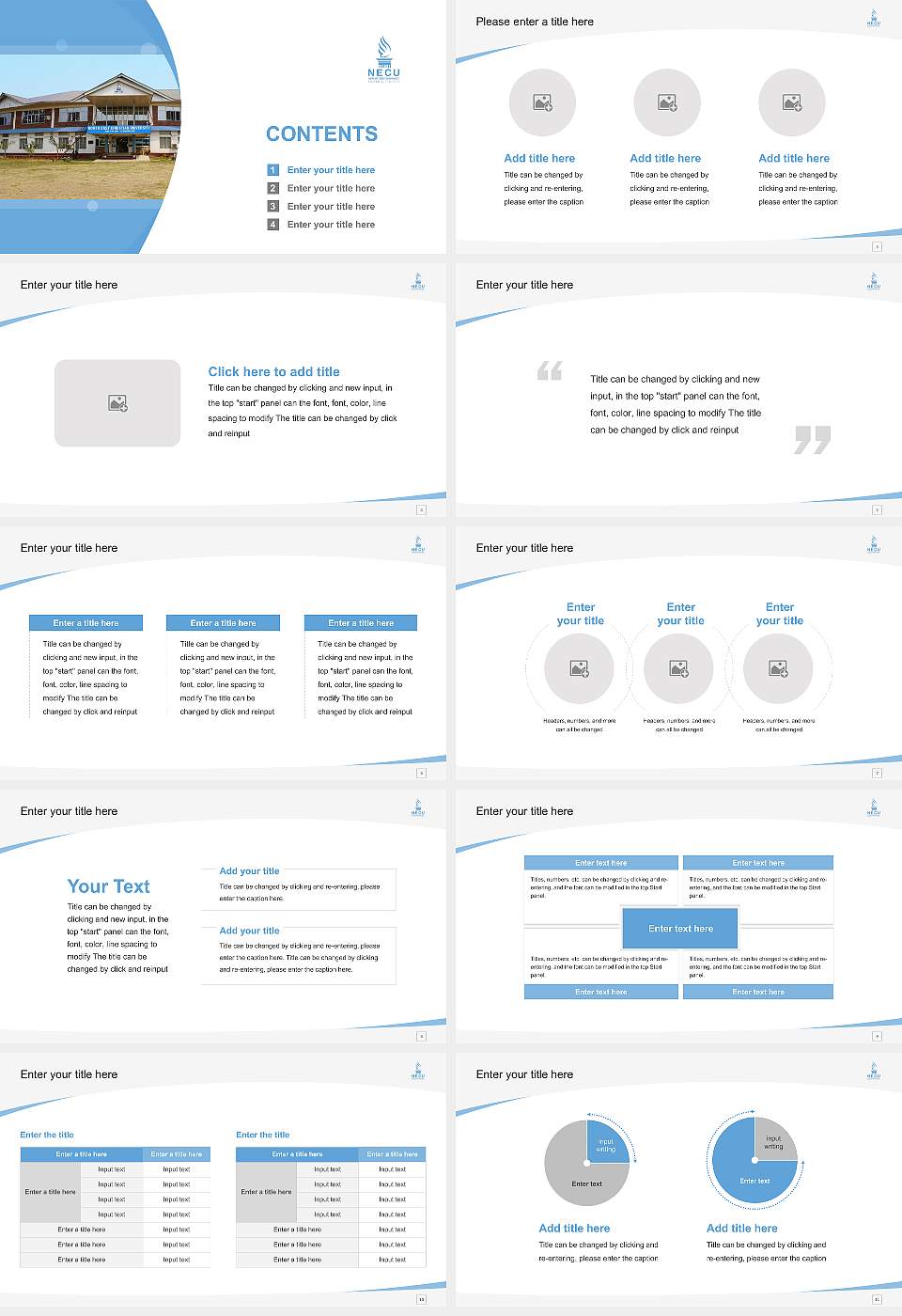 This template can be widely used for projects at North East Christian University, providing an efficient tool for both faculty and students to enhance their presentation experience. When using the template to create presentations, please ensure that your device's resolution matches the template's aspect ratio for the best visual effect.