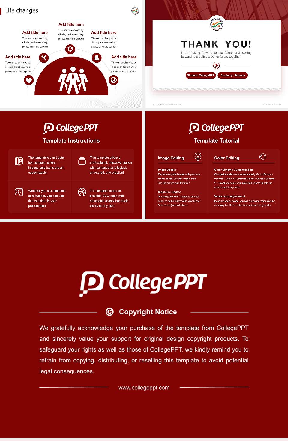 National Law University, Jodhpur장학금 방어 PPT 템플릿은 원클릭 색상 변경을 지원하는 표준화된 PPT 템플릿입니다. 아래 단계를 따르세요: