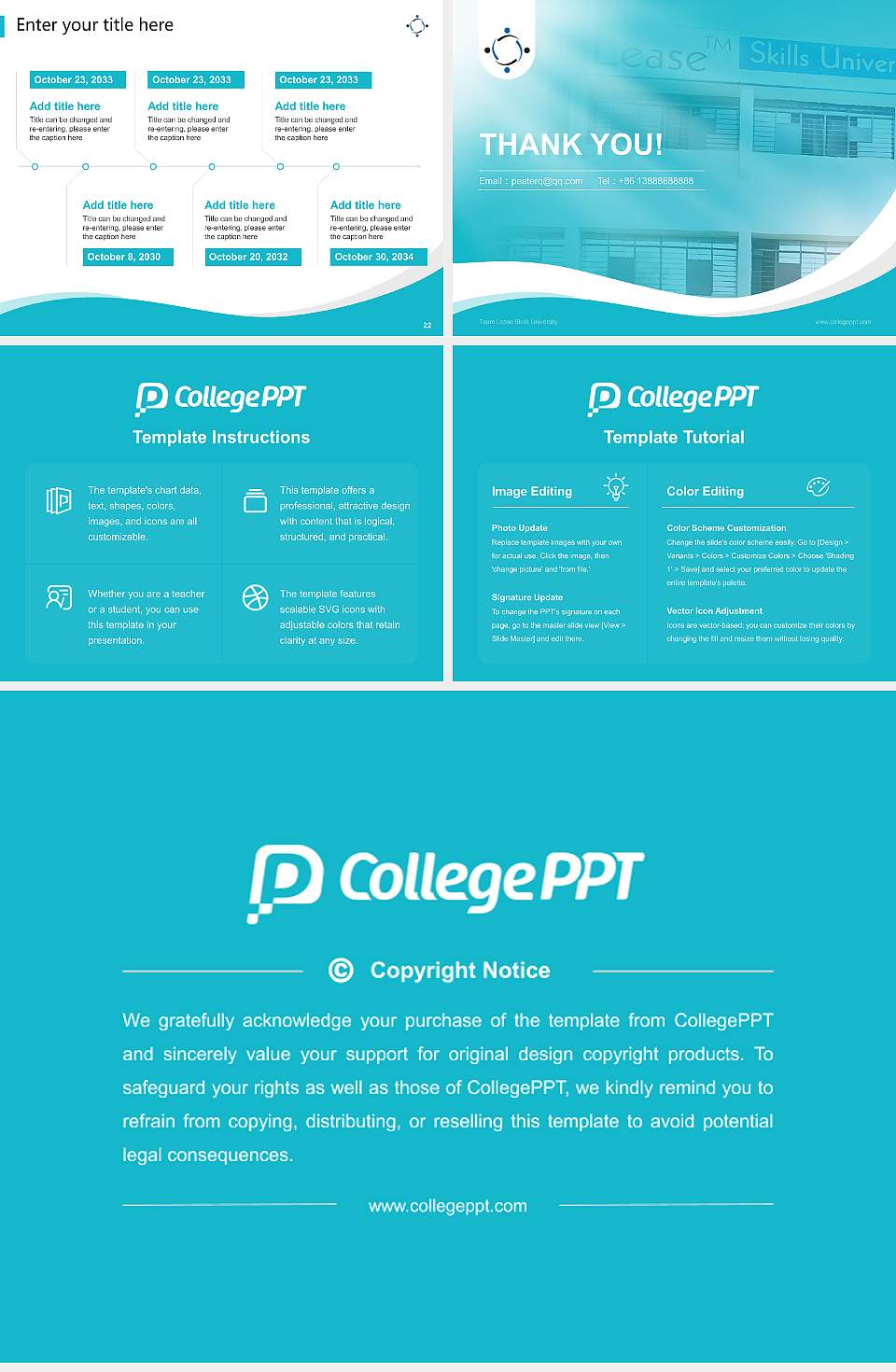 此模板用于讲座,具有与团队租赁技能大学匹配的封面、校徽和主题色。购买后,您可以修改主题色、编辑幻灯片内容以及母版幻灯片。您可以通过团队租赁技能大学、讲座 PPT模板、PPT模板等关键词找到该模板。