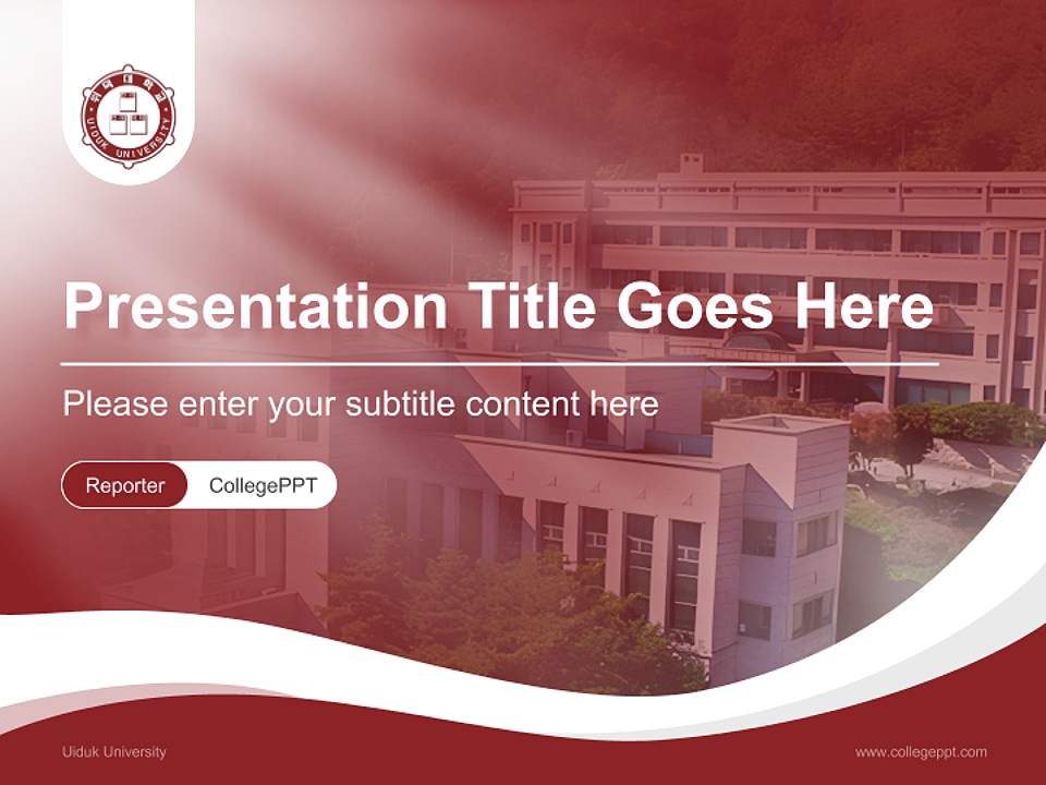 The Uiduk University Lecture PPT Template is a high-quality PowerPoint template designed specifically for the faculty and students of Uiduk University. This template has a unique ID of 431417 and contains a total of 26 slides. It includes both 16:9 and 4:3 aspect ratios and is provided in the standardized PPTX format, ensuring all elements and content can be easily modified for a "what you see is what you get" experience.