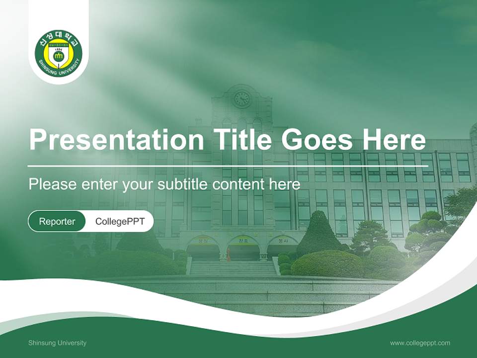 此模板用于讲座,具有与新成大学匹配的封面、校徽和主题色。购买后,您可以修改主题色、编辑幻灯片内容以及母版幻灯片。您可以通过新成大学、讲座 PPT模板、PPT模板等关键词找到该模板。
