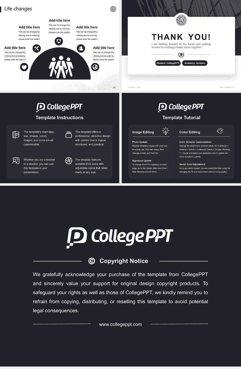 Easy to Edit: All graphics and content in the PPT template are fully editable. The template adheres to standard color schemes, allowing users to easily adjust the color scheme with a one-click color change feature.