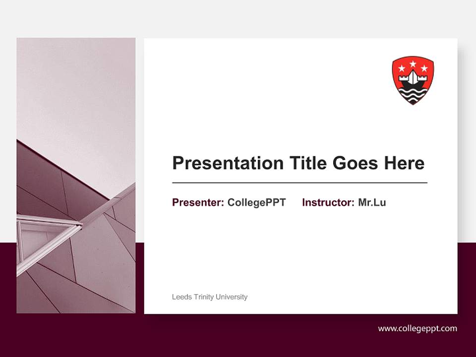 This General template features a matching cover, school emblem, and theme colors for Leeds Trinity University. After purchase, you can modify theme colors, edit slide content, and master slides. Find this template with keywords like General, Leeds Trinity University PPT template, PPT template, and more.
