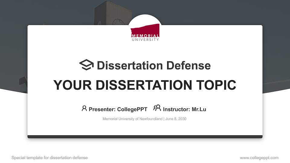 Memorial University of Newfoundland학위 논문 방어 PPT 템플릿은 원클릭 색상 변경을 지원하는 표준화된 PPT 템플릿입니다. 아래 단계를 따르세요: